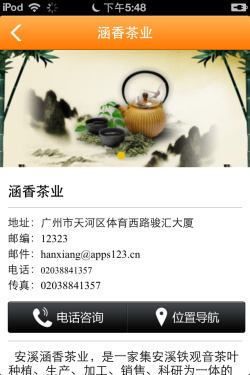 通过该功能,可以全面掌握涵香茶业的联系方式以及位置导航